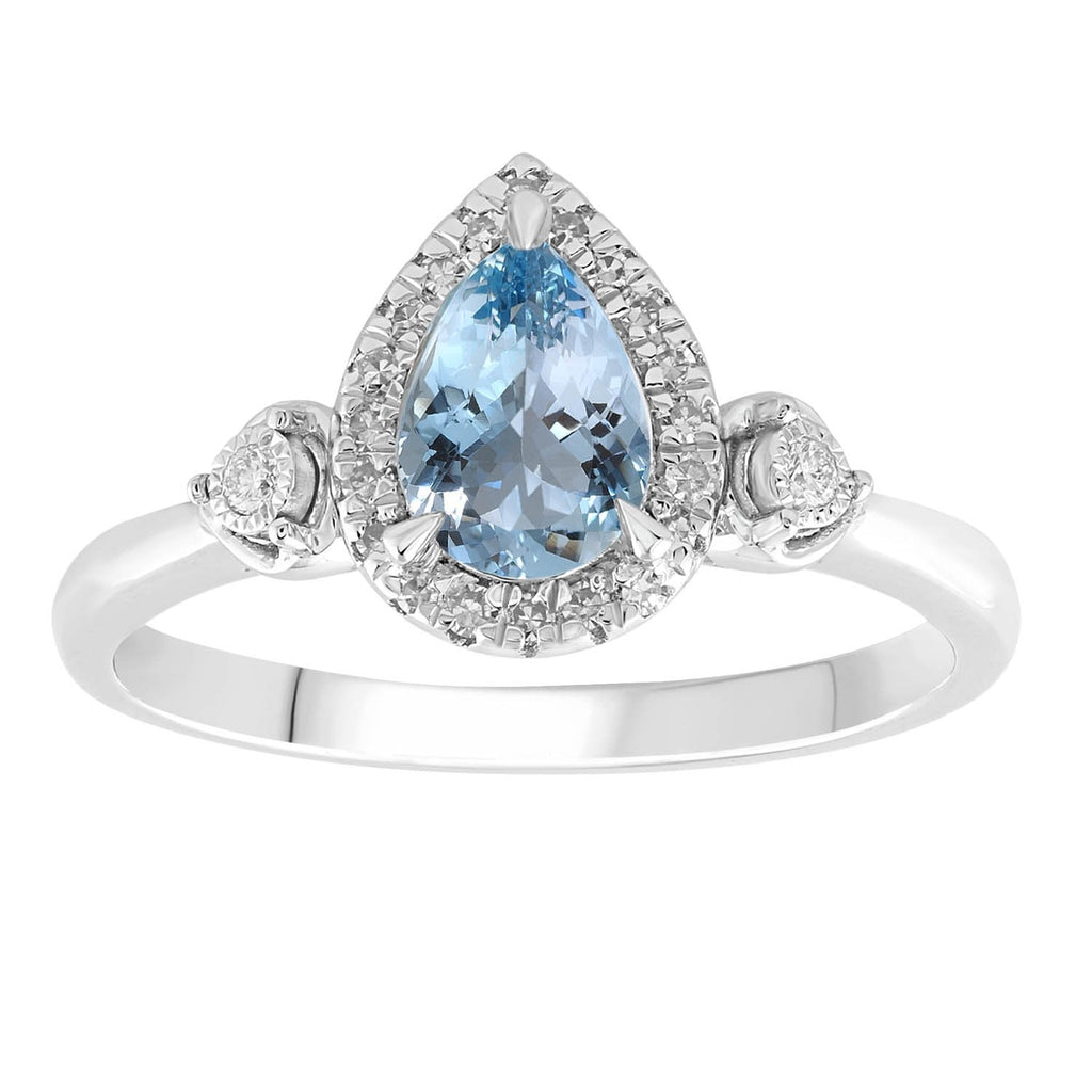 Aquamarine Ring with 0.10ct Diamonds in 9K White Gold