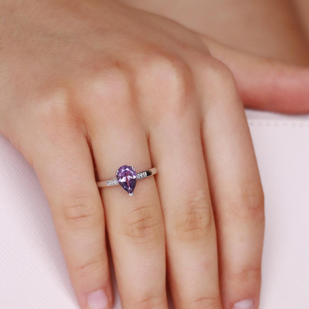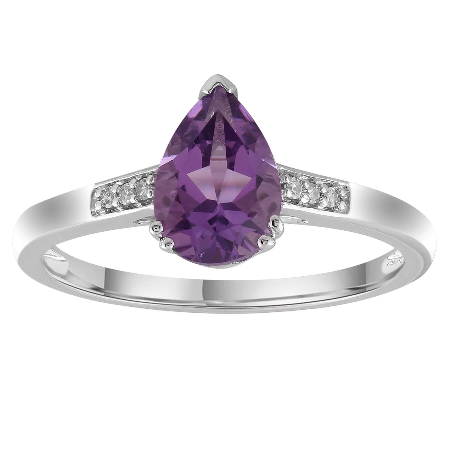 You'll sparkle with this Amethyst ring featuring 7 stones, total diamond weight of 0.03 carats set in 9K white gold.