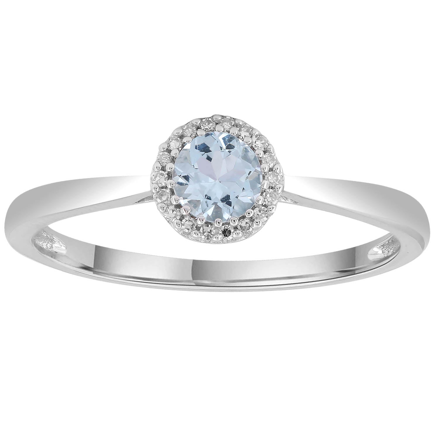 Aquamarine Ring with 0.05ct Diamonds in 9K White Gold