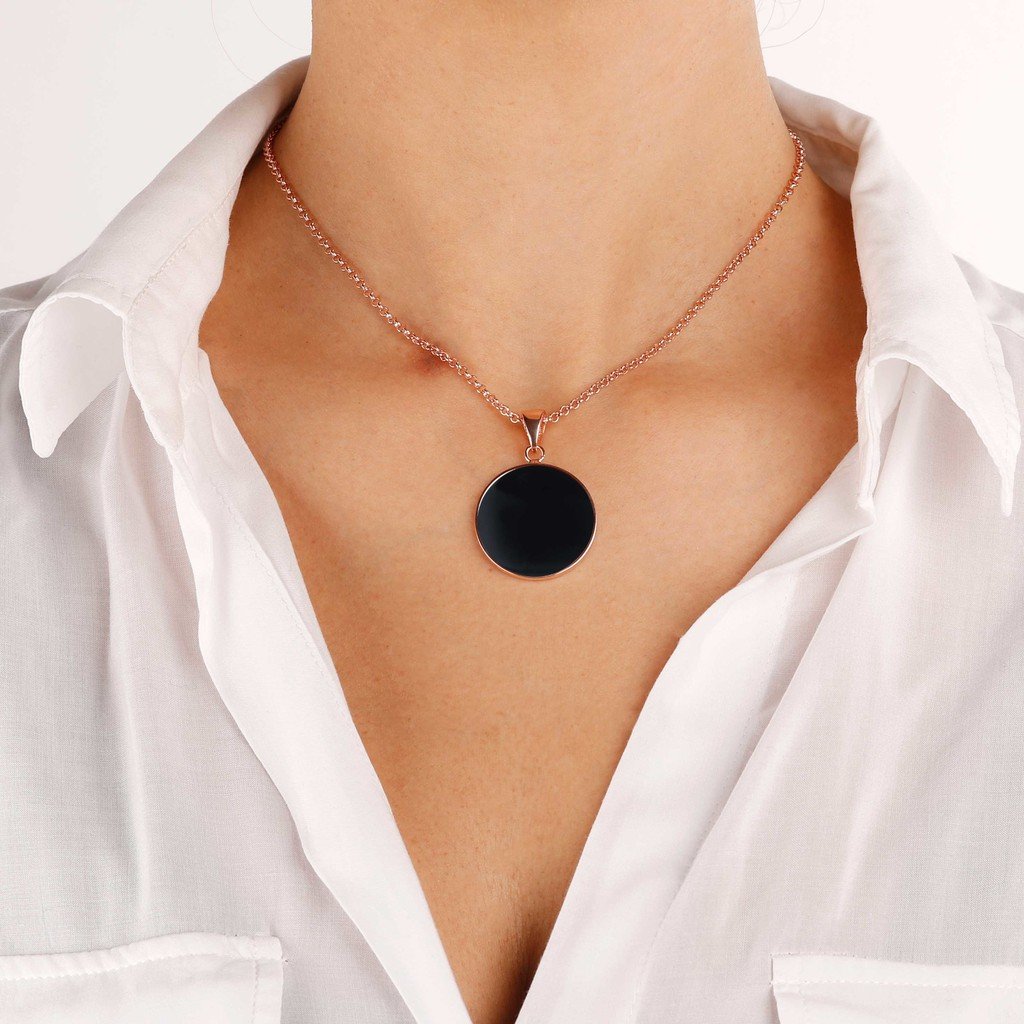 Bronzallure Black Onyx Disc Necklace