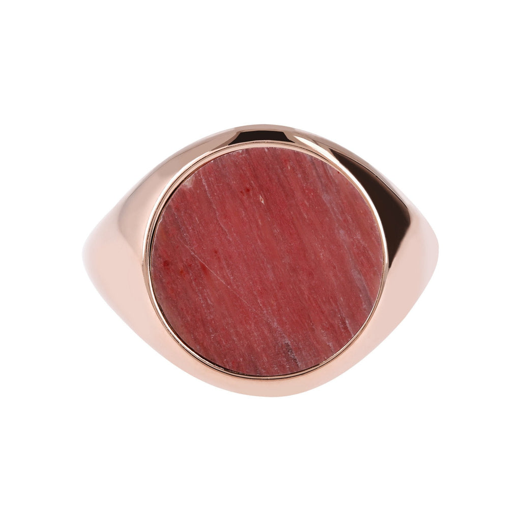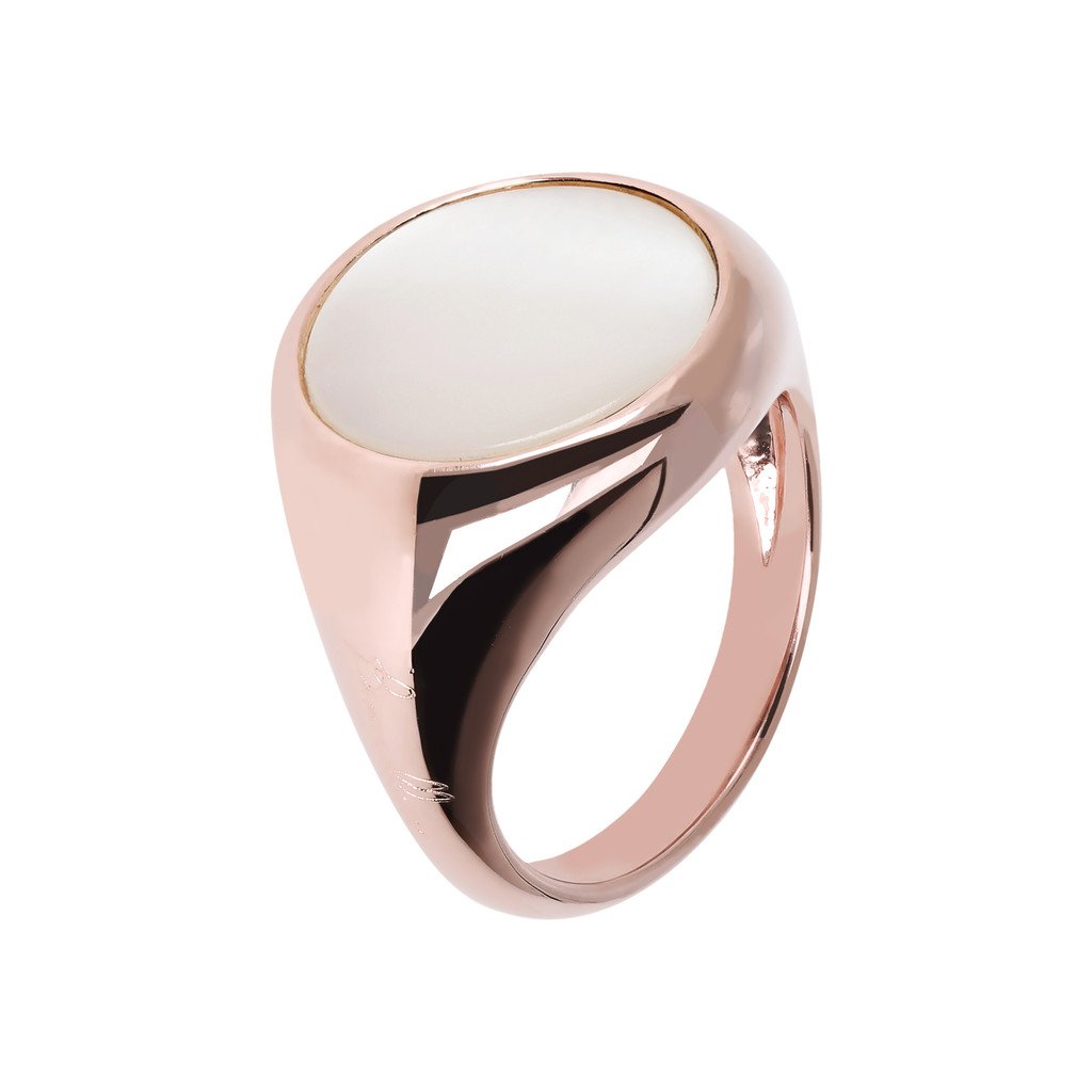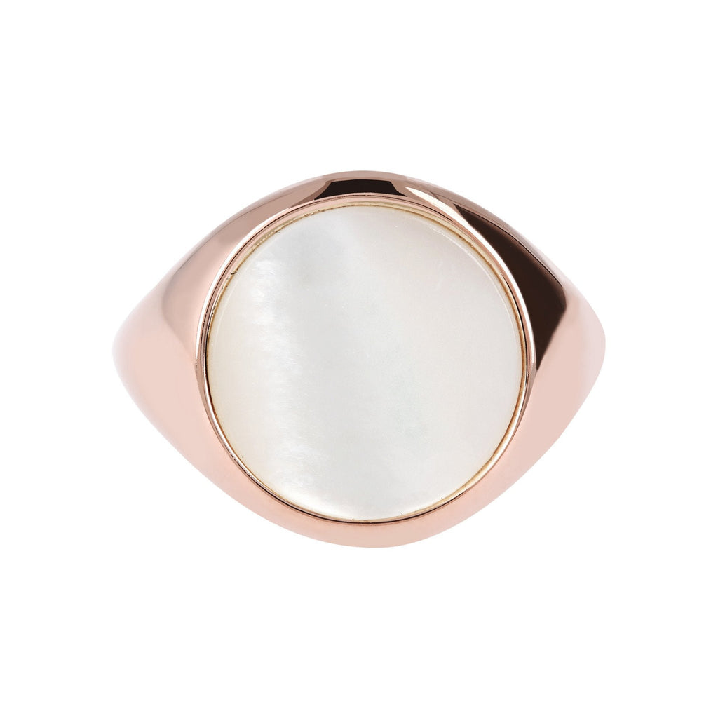 A best-selling chevalier ring from the Alba collection proposed in a mini version. Discover this jewel with a natural stone disc and an 18ktrose gold plated Golden Rose base. A lively and jaunty ring, ideal for every day and on every look.