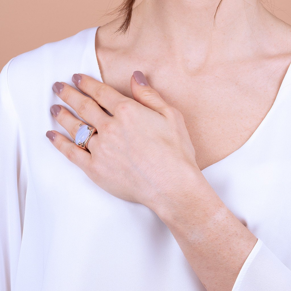 The Queen maxi ring offers all the expertise of Bronzallure's finest craftsmanship for an unprecedented design. The 18K rose gold plated Golden Rose base incorporates an oval faceted natural stone. An ideal piece of jewellery to embellish any look.