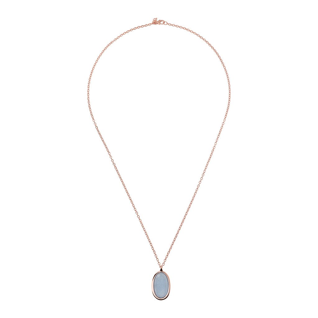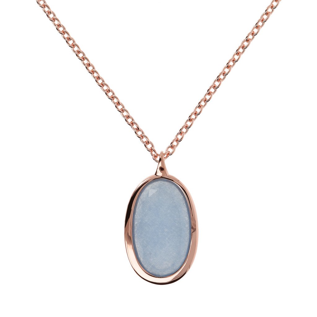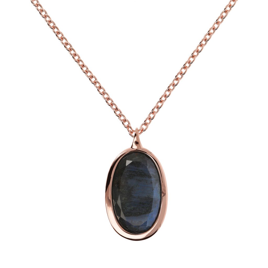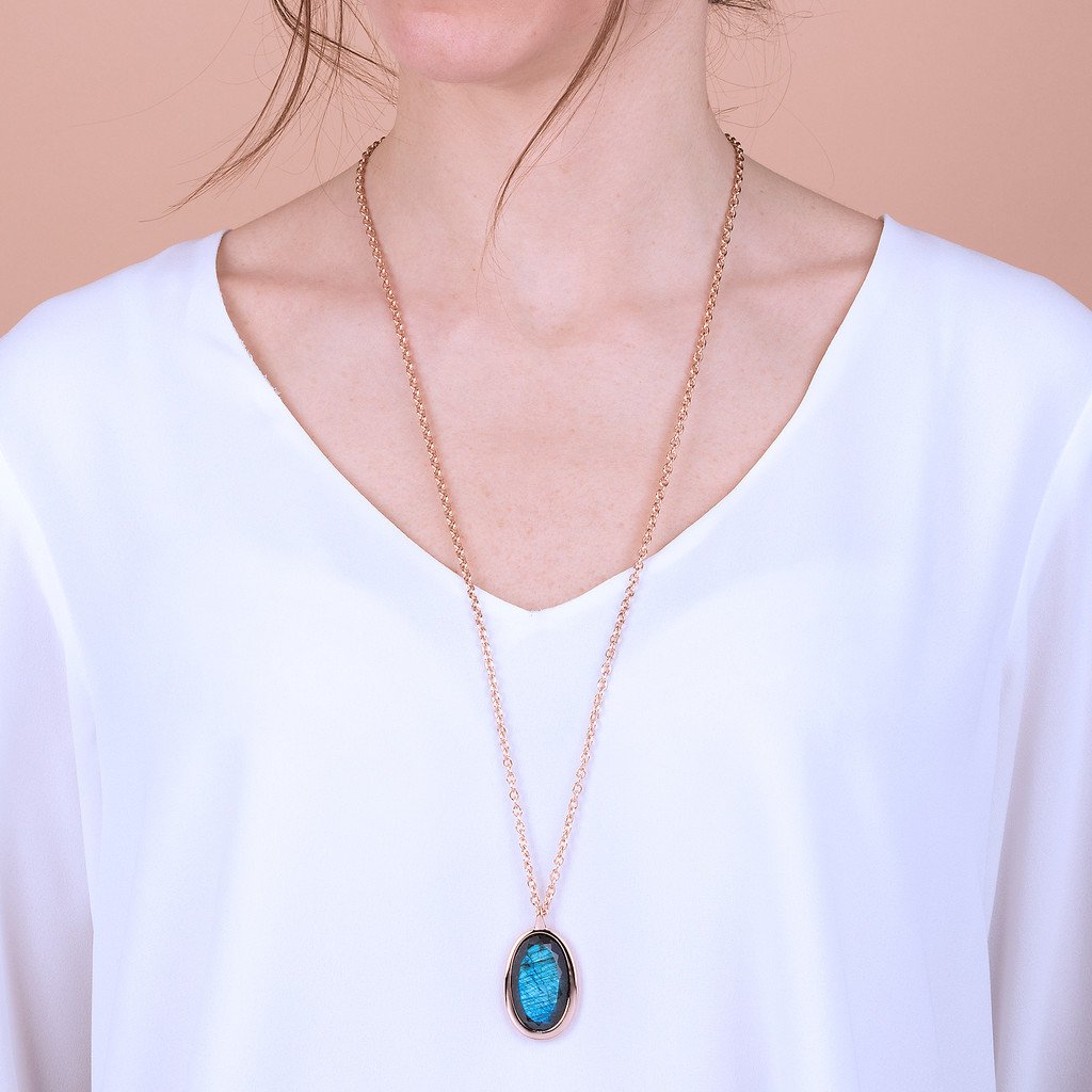 The Incanto Necklace with oval natural stone pendant represents the best of the Italian goldsmithing tradition. A jewel in Golden Rose, 18kt rose gold plated, proposed in labradorite, rose quartz or blue quartz. Perfect every day to give a twist to your outfits and be unique.