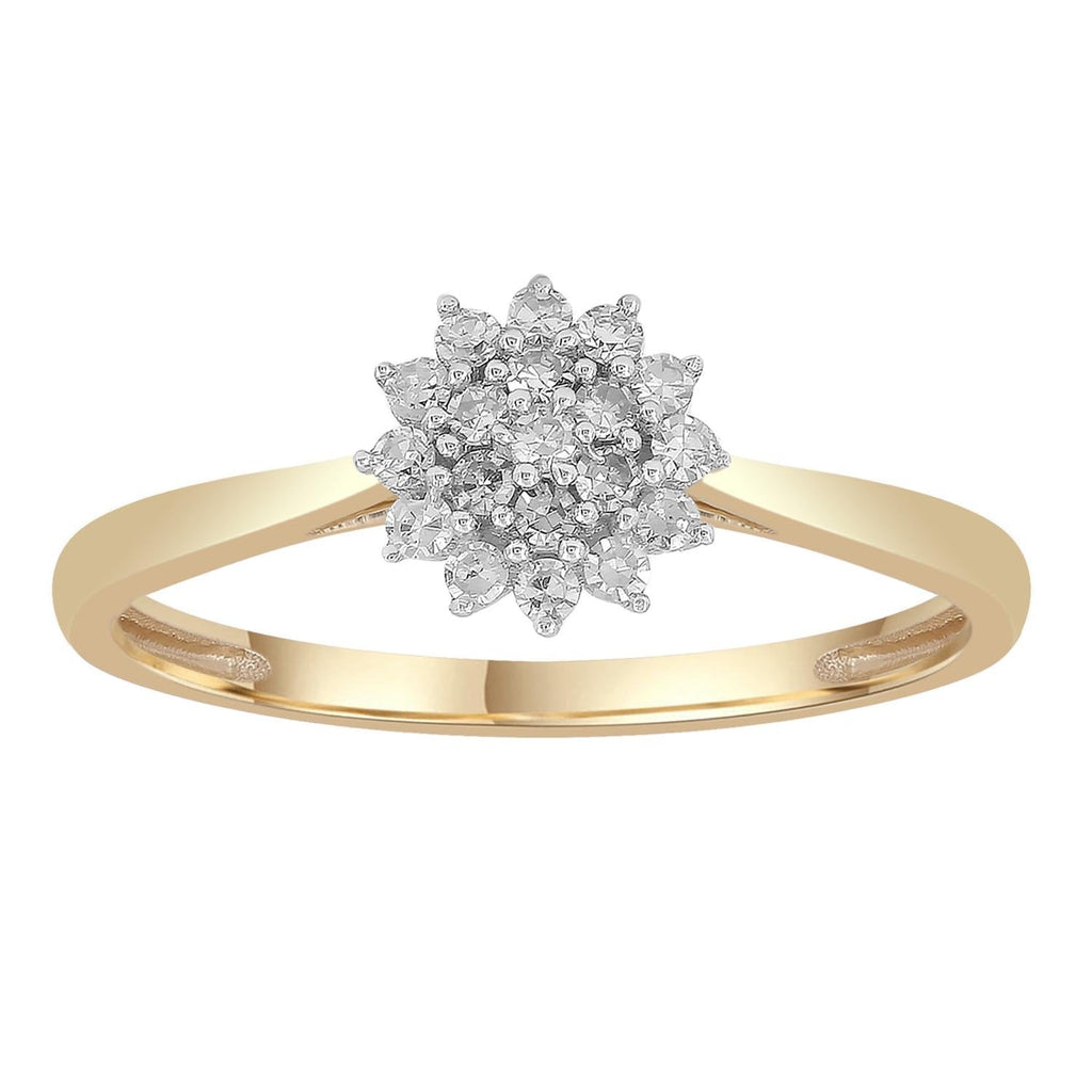Cluster Ring with 0.15ct Diamonds in 9K Yellow Gold