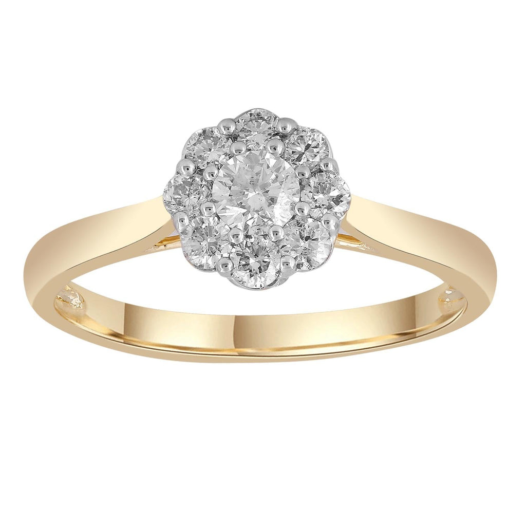 Cluster Ring with 0.5ct Diamonds in 9K Yellow Gold