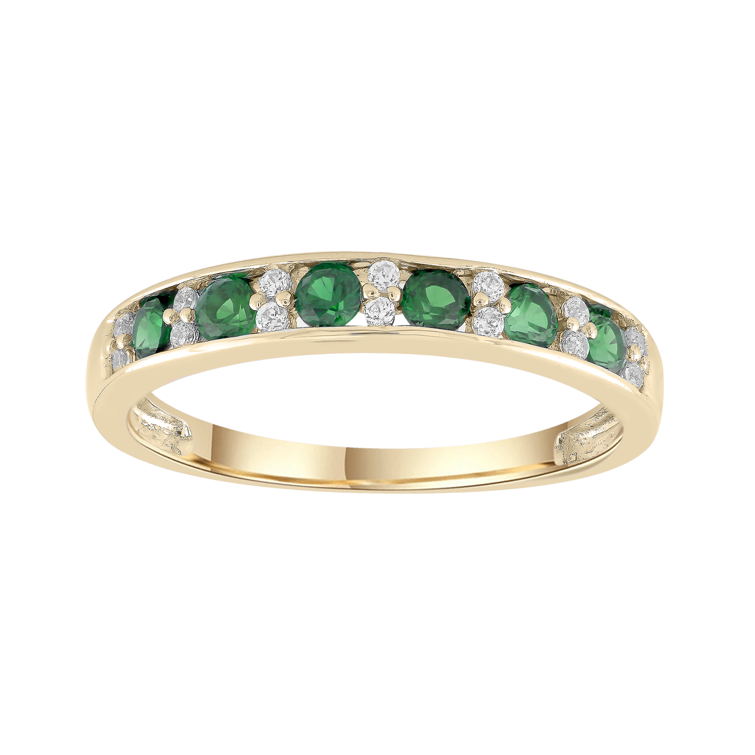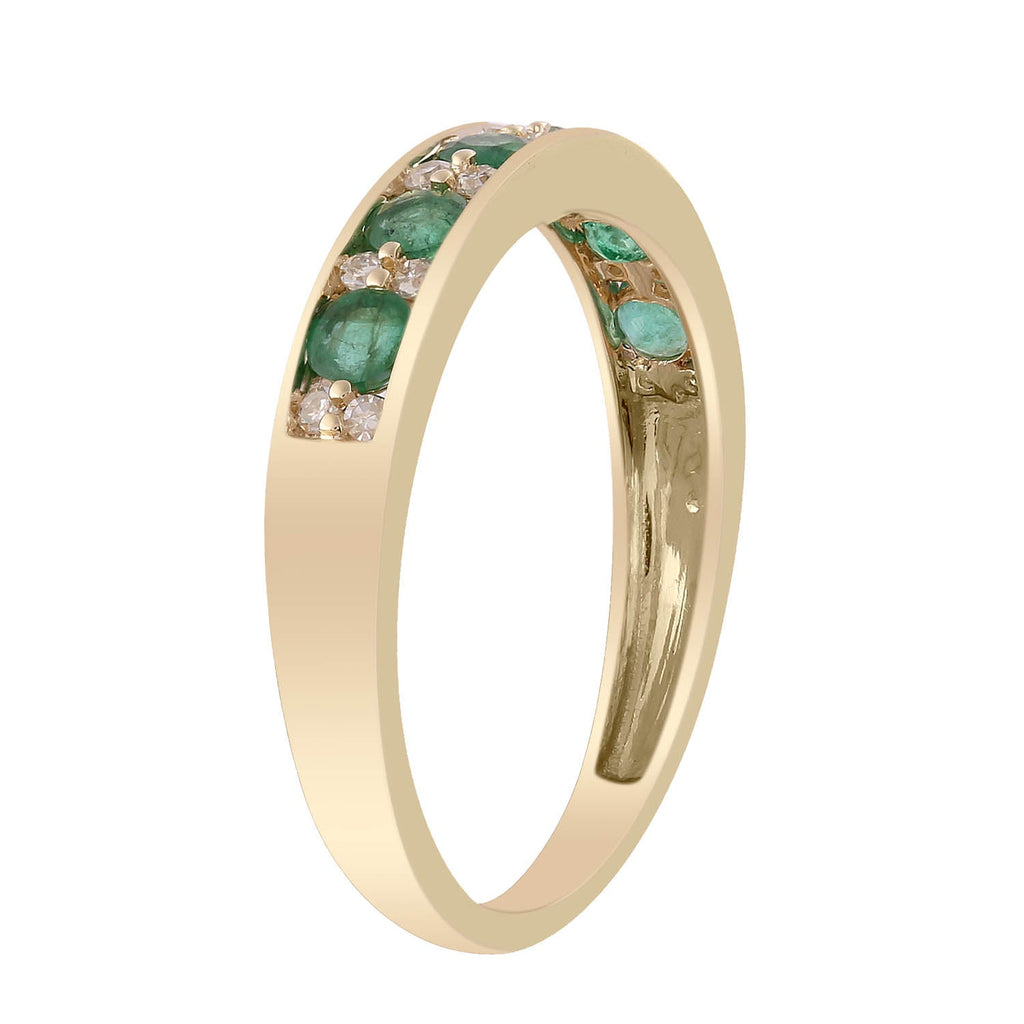 Diamond Emerald Ring with 0.10ct Diamonds in 9K Yellow Gold