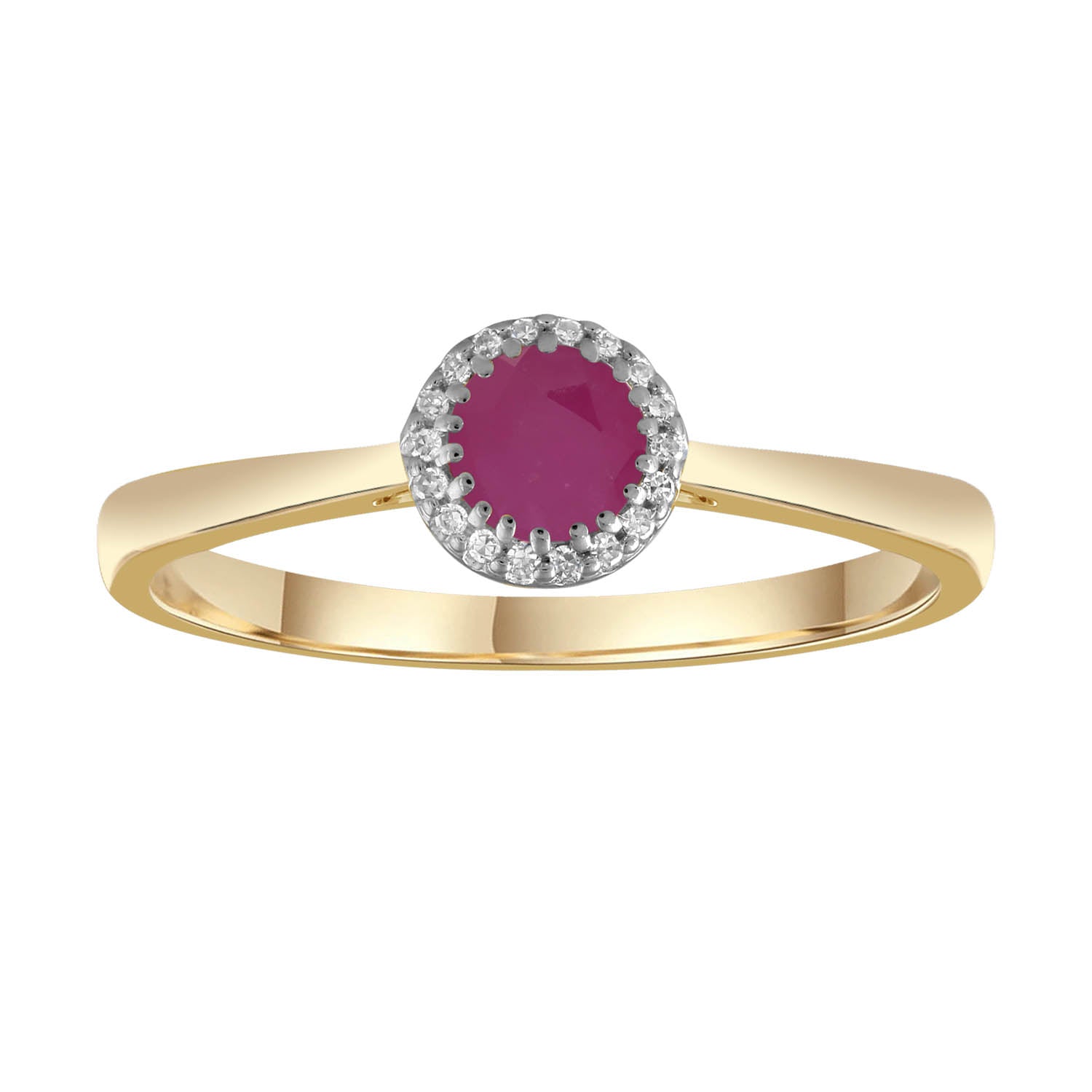 Diamond Ruby Ring with 0.05ct Diamonds in 9K Yellow Gold
