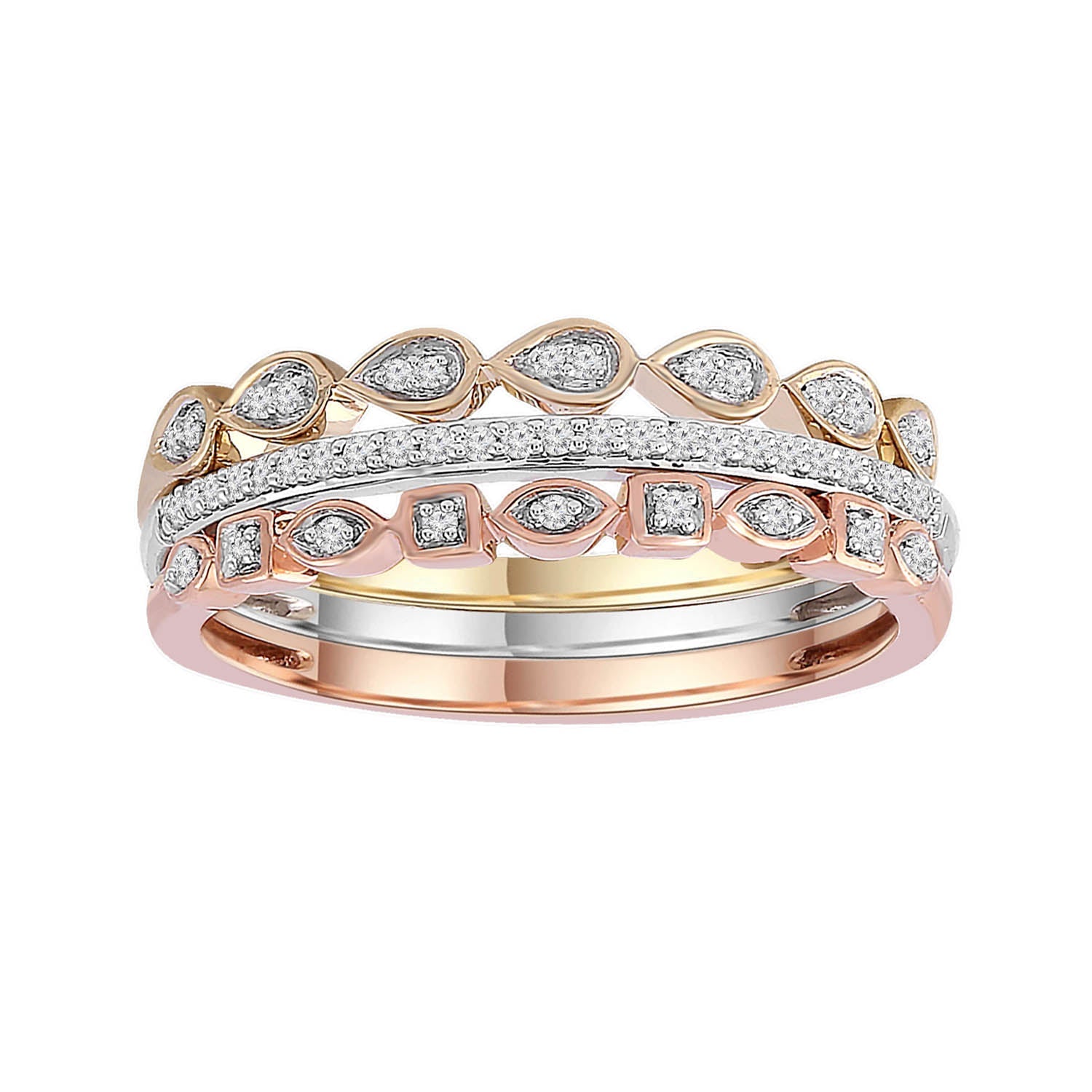Diamond Tri Colour Ring with 0.12ct Diamonds in 9K Tri Colour Gold