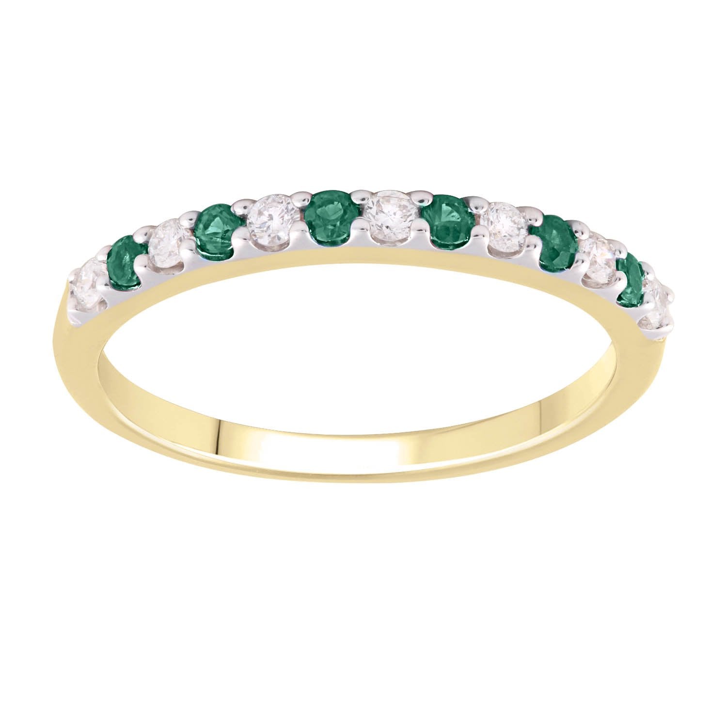 Looking at adding that 'wow' piece to your jewellery collection? This Emerald Ring is the perfect choice. Featuring 13 diamonds, with a total diamond weight of 0.15 carats set in 9K Yellow Gold.