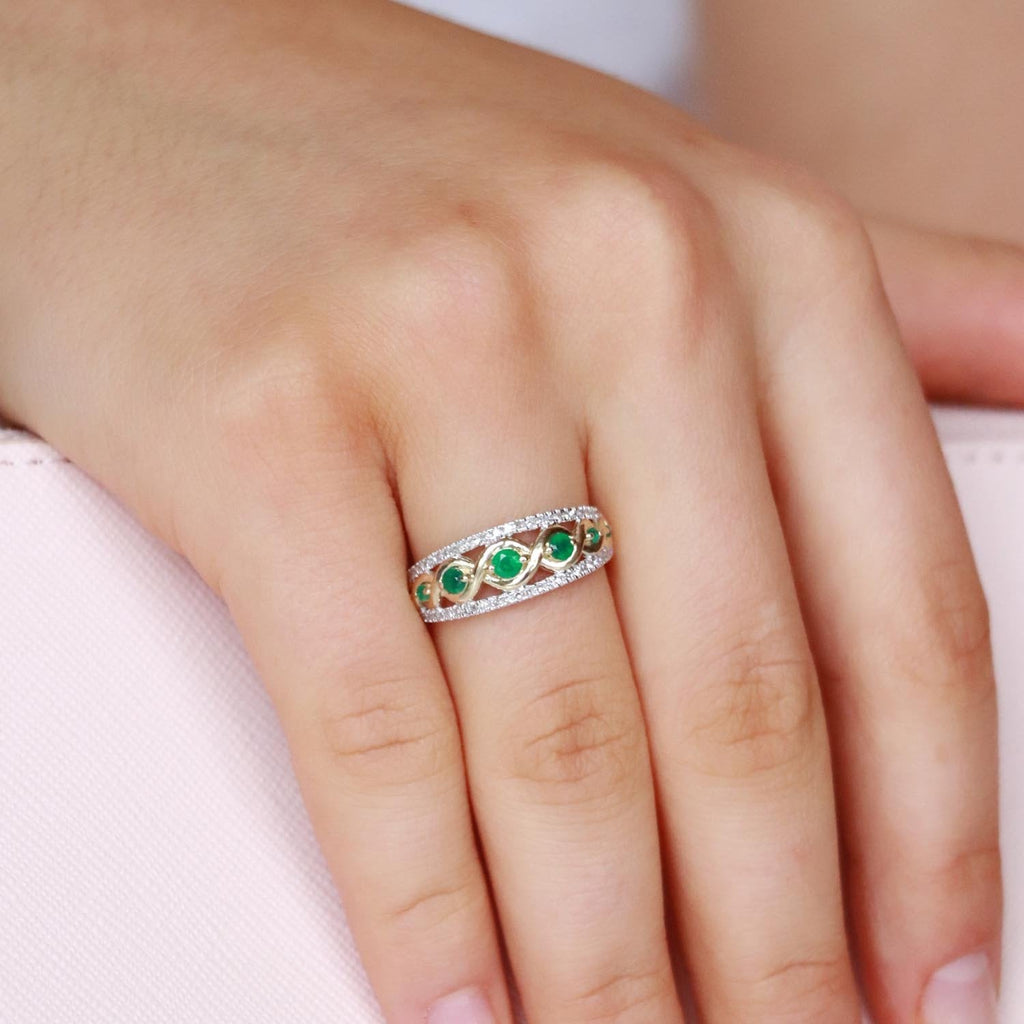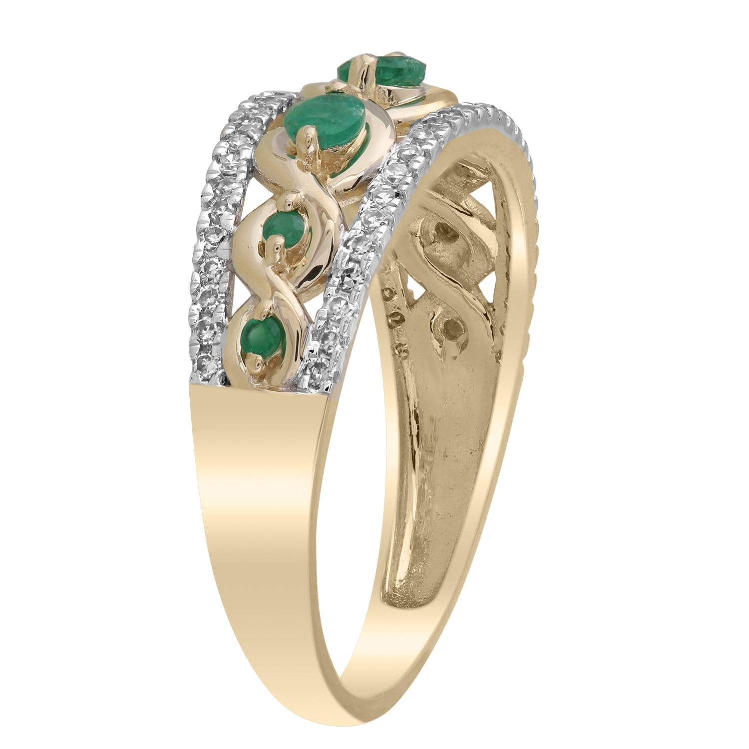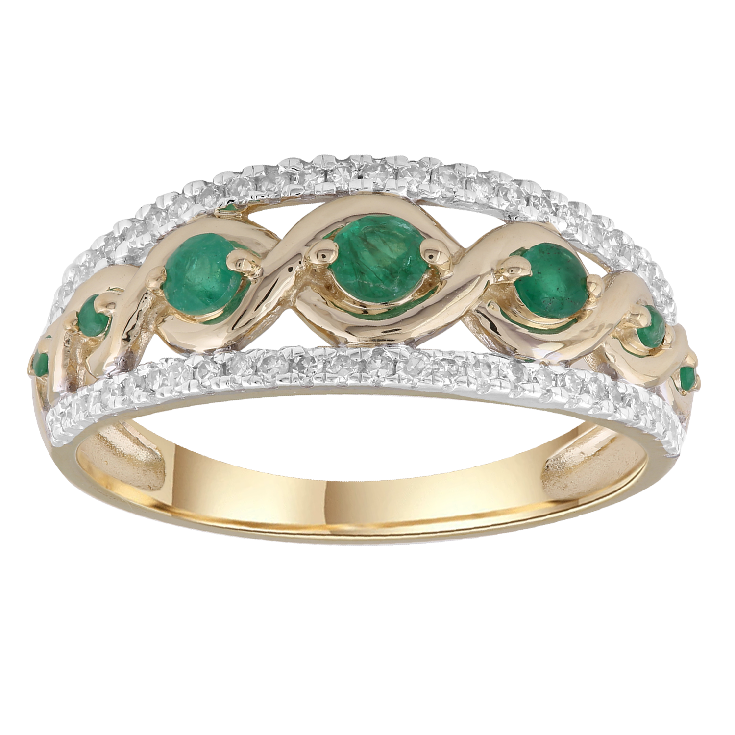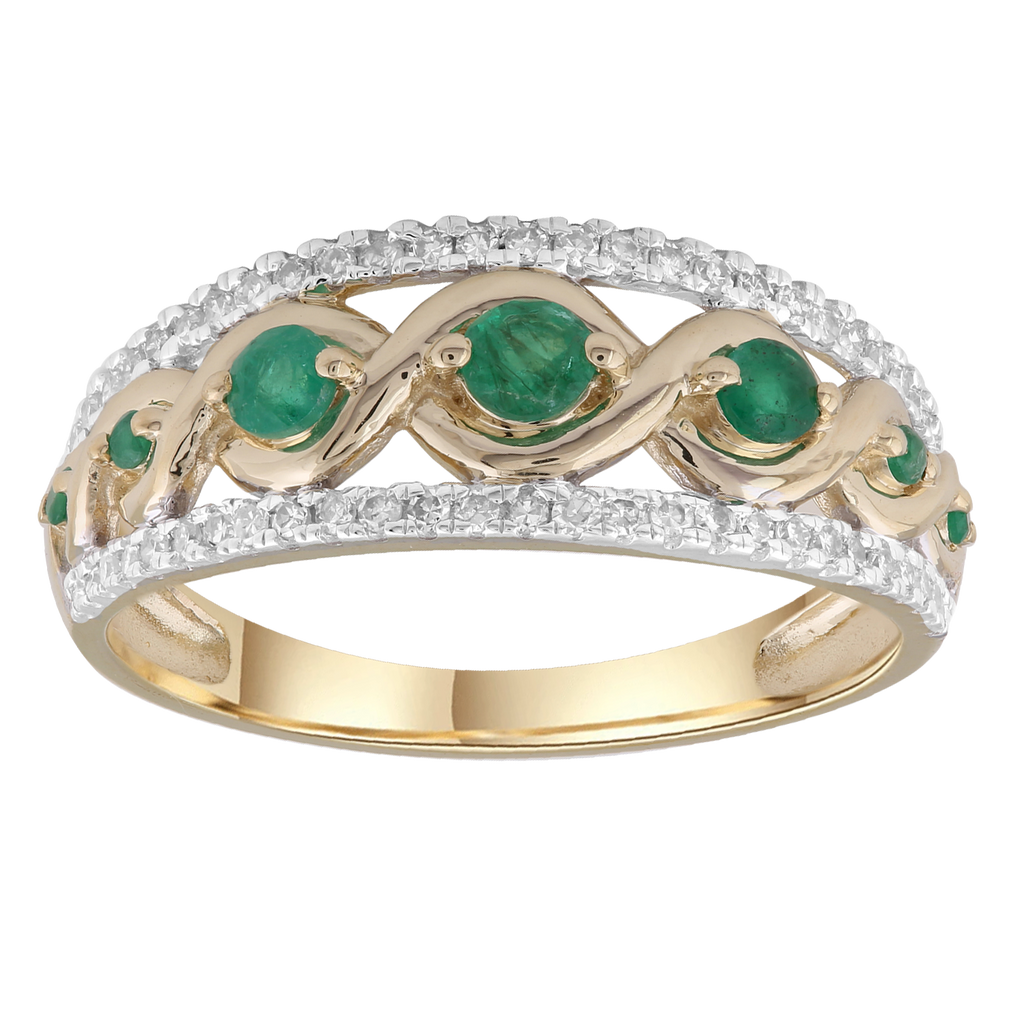 Emerald Ring with 0.2ct Diamonds in 9K Yellow Gold