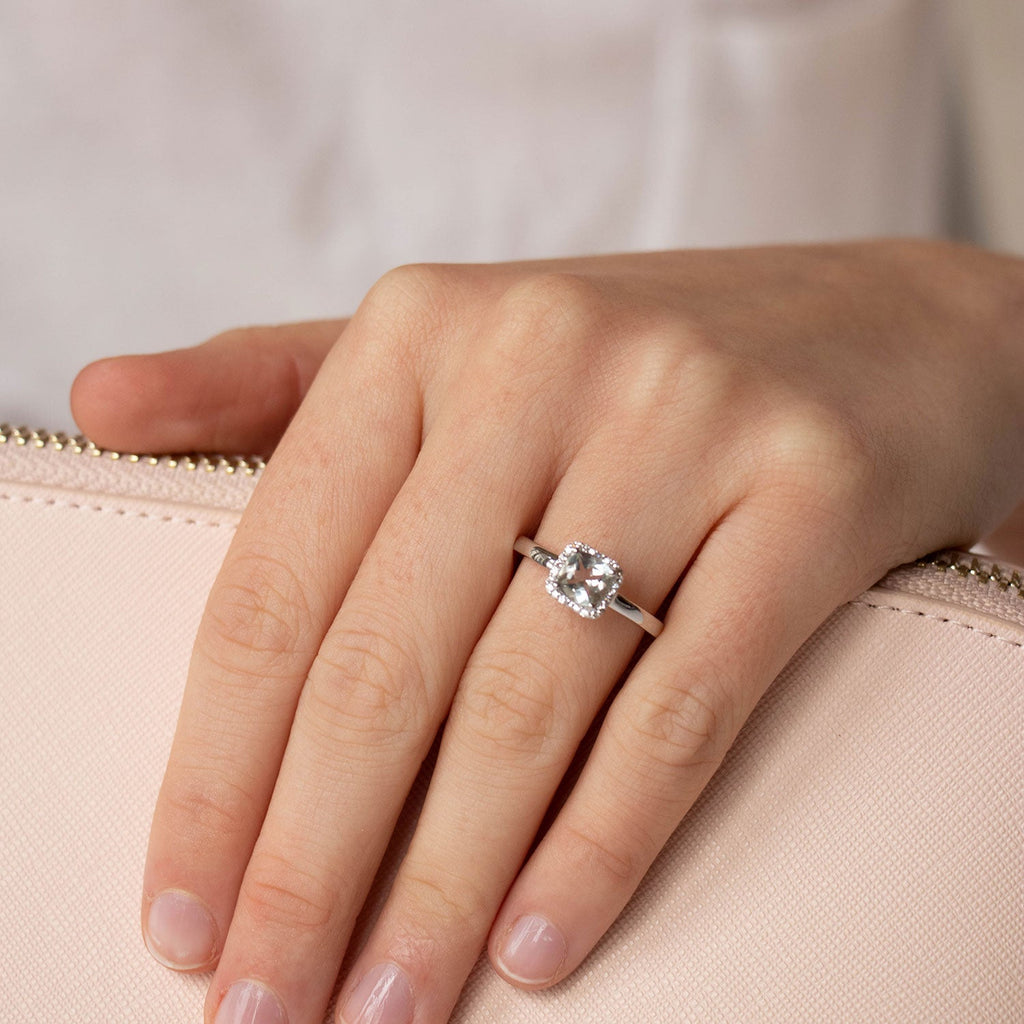 Looking at adding that 'wow' piece to your jewellery collection? This Green Amethyst Ring is the perfect choice. Featuring 25 diamonds, with a total diamond weight of 0.08 carats set in 9K White Gold.