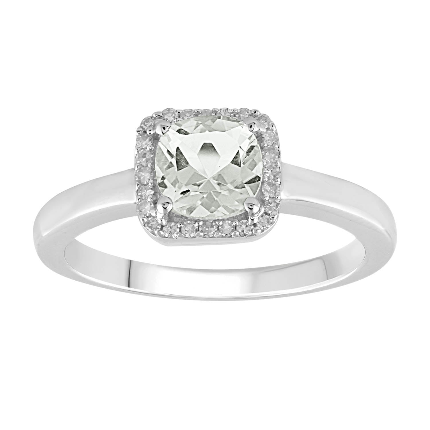 GREEN AMETHYST RING WITH 0.08CT DIAMONDS IN 9K WHITE GOLD