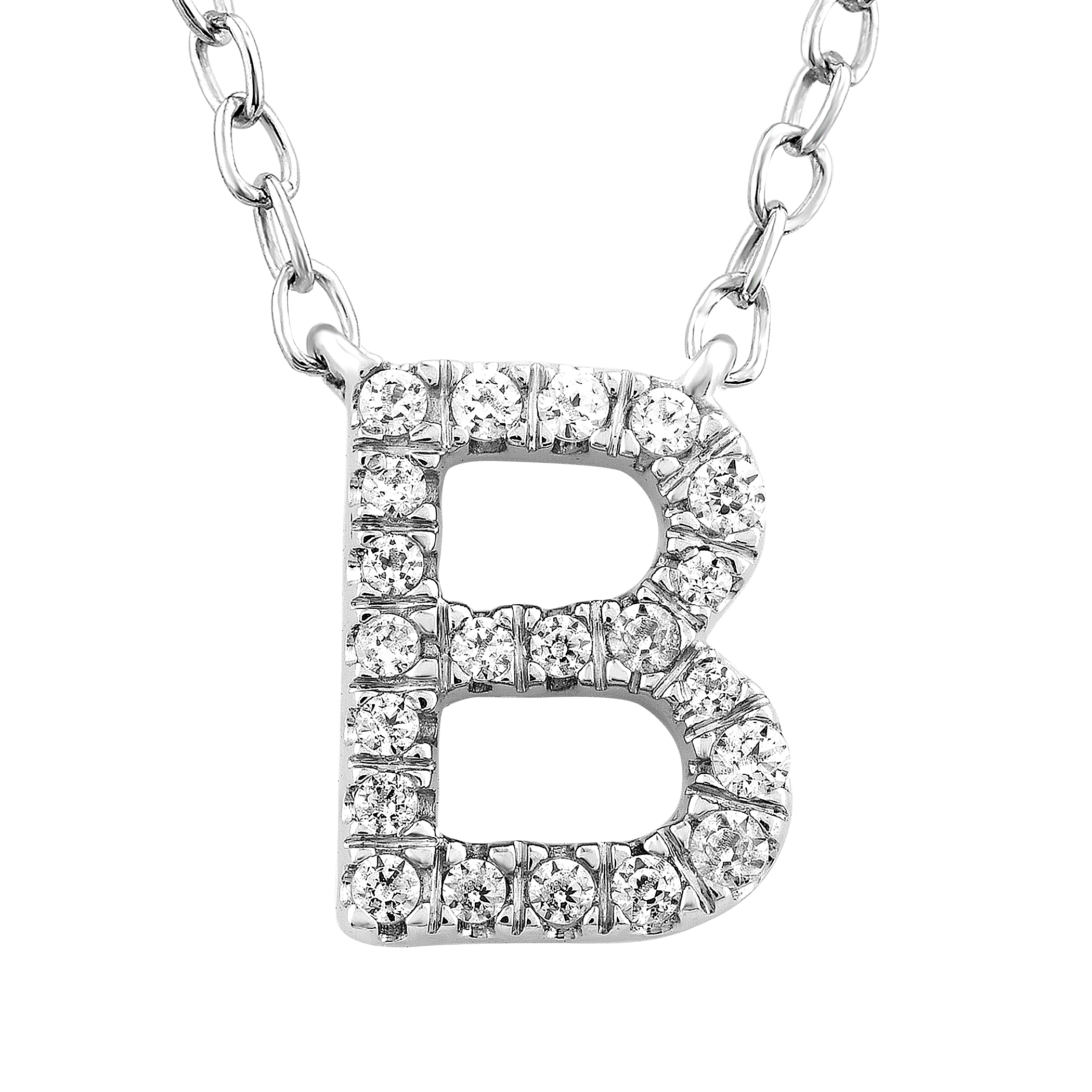 Name necklaces are the latest must-have fashion piece. Choose this Initial 'B' Necklace with 0.09ct Diamonds in 9K White Gold for the perfect look. Great for a gift or for yourself.