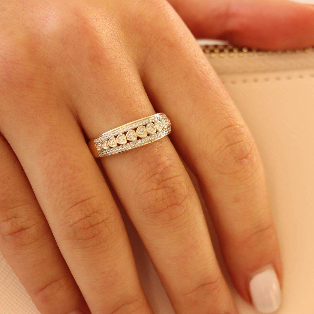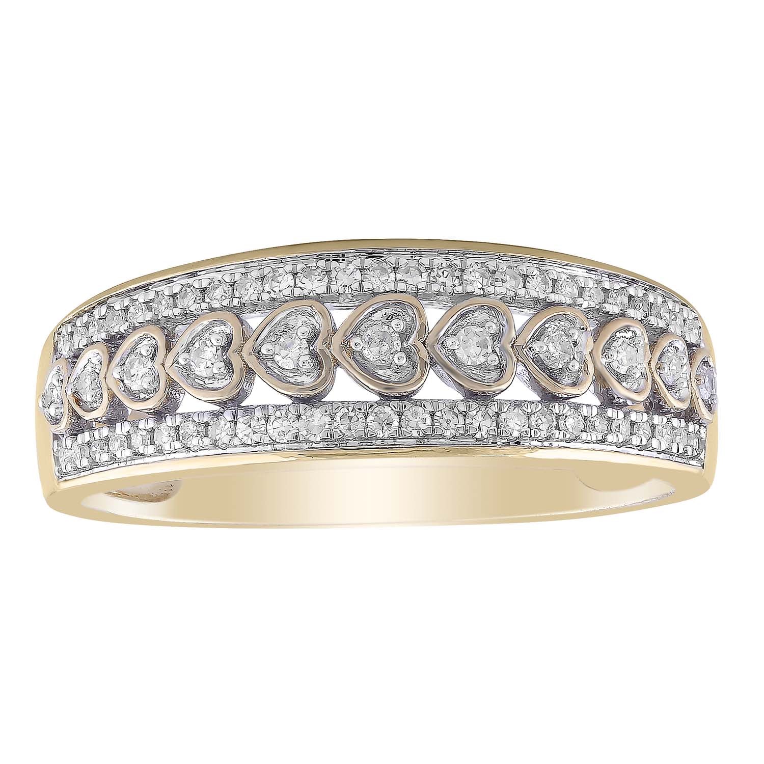 Layer Heart Ring with 0.2ct Diamond In 9K Yellow Gold