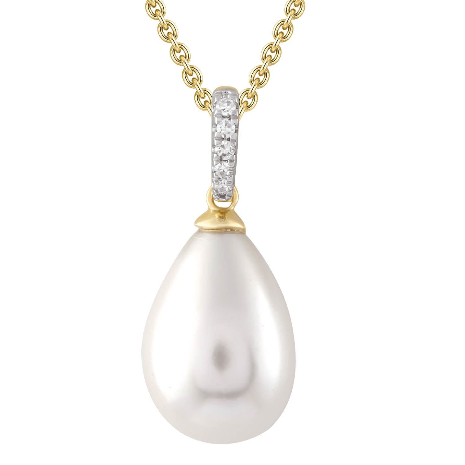 Diamond Pearl Necklace with 0.02ct Diamonds in 9K Yellow Gold - N-20566-002-Y