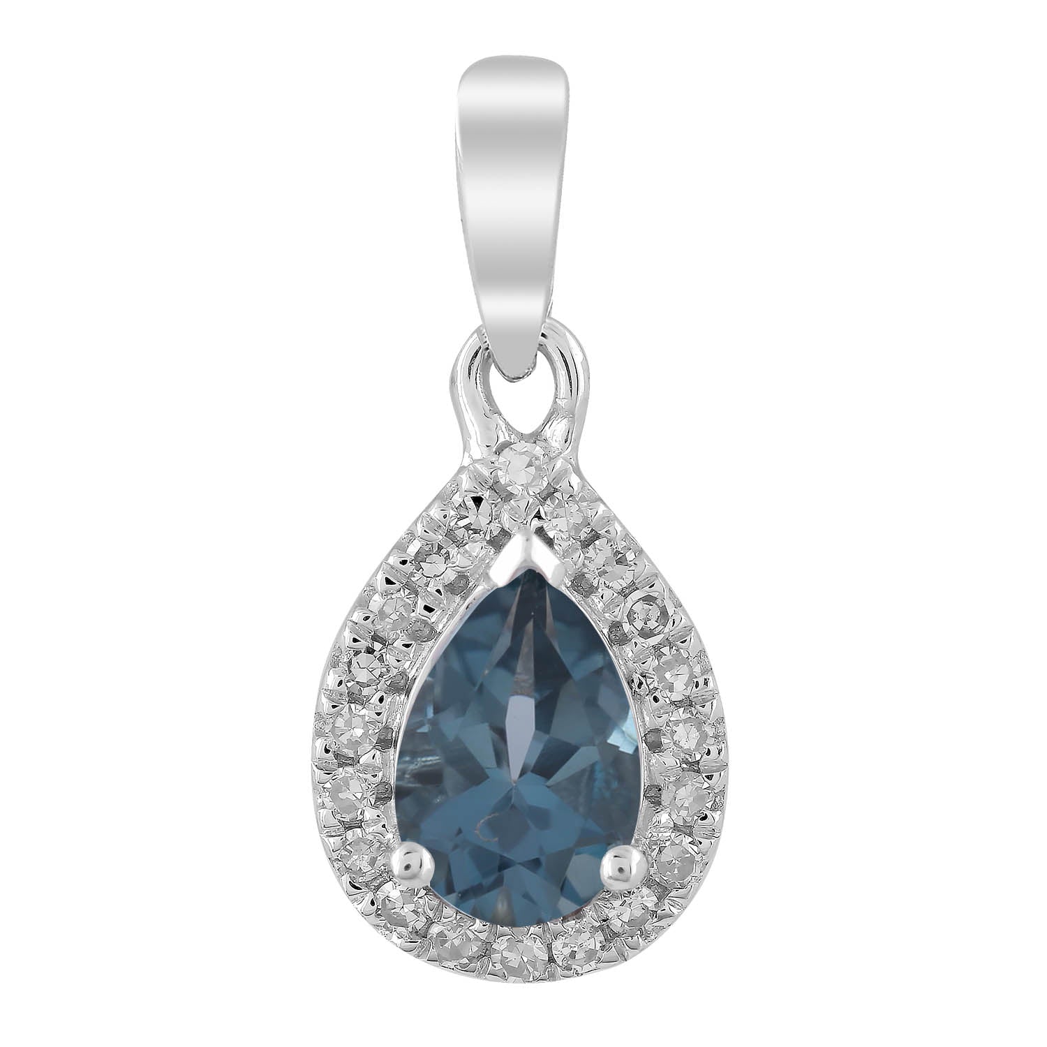 Diamond London Blue Topaz Pendant with 0.07ct Diamonds in 9K White Gold - P-19474BT-007-W