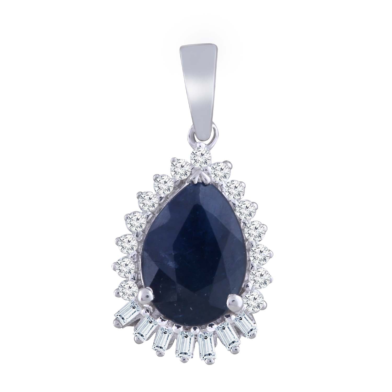 Pear Sapphire Pendant with 0.08ct Diamond in 9K White Gold
