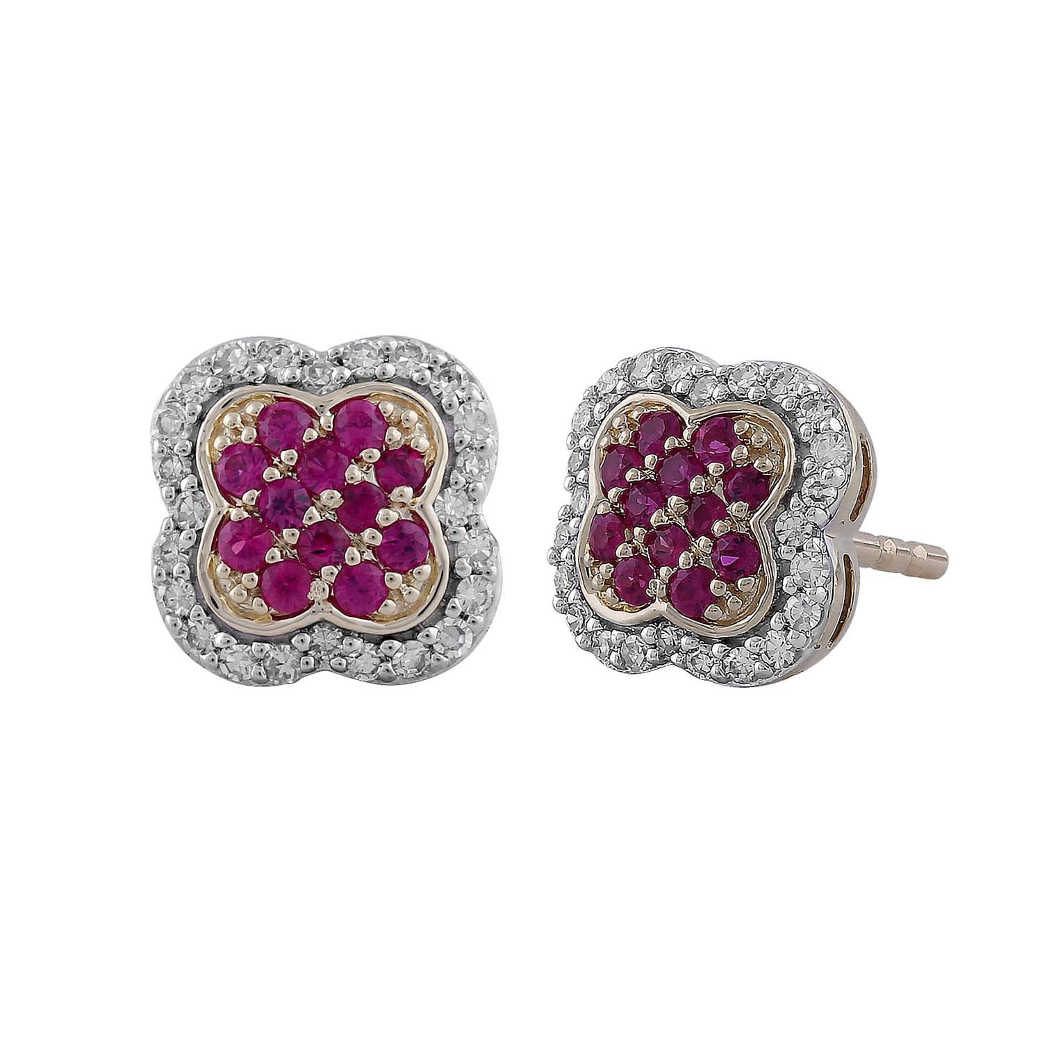 Ruby Earrings with 0.14ct Diamond In 9K Yellow Gold