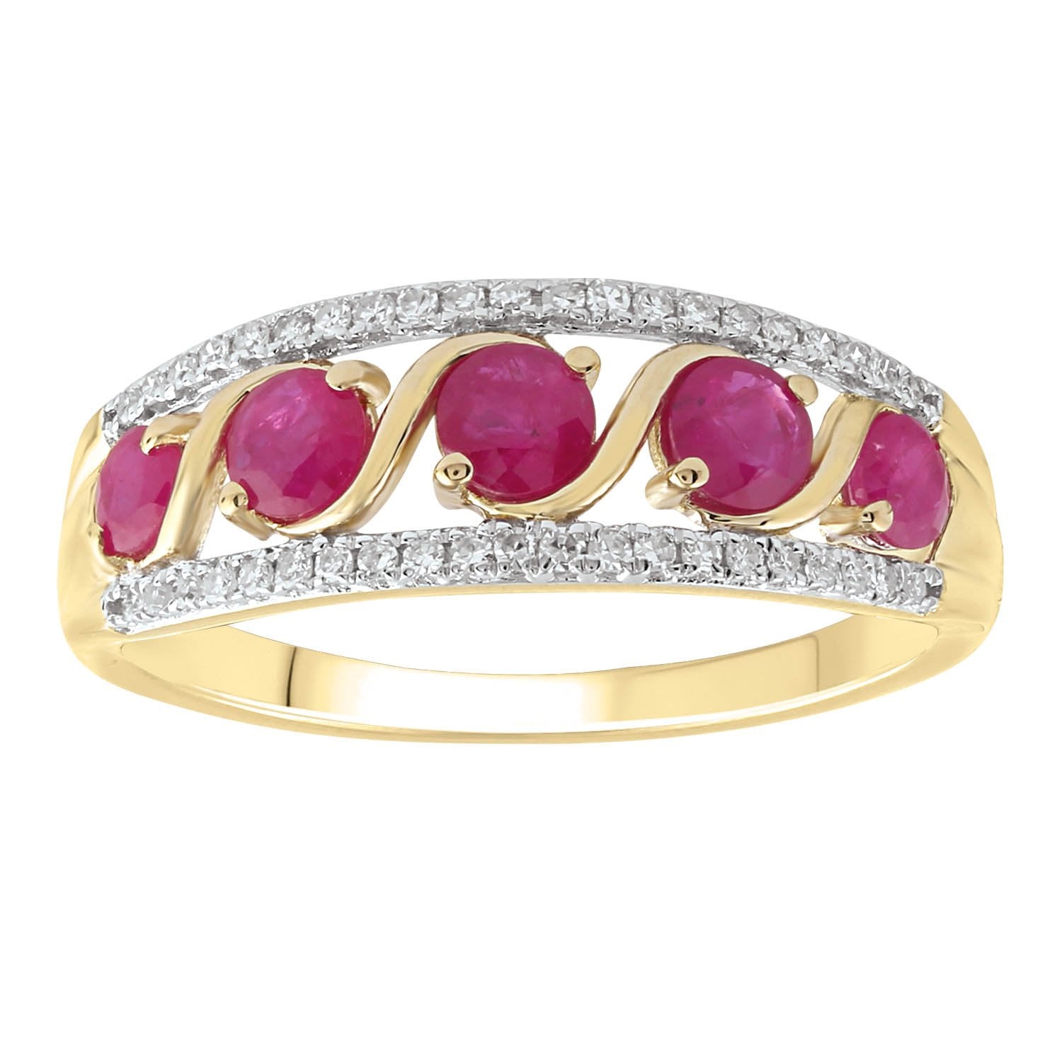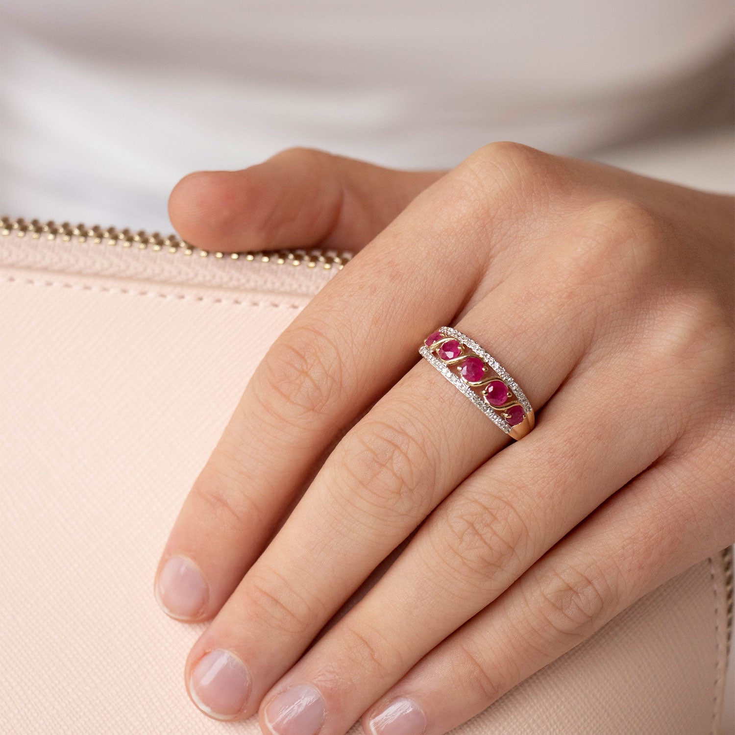 Ruby Ring With 0.15ct Diamonds In 9K Yellow Gold