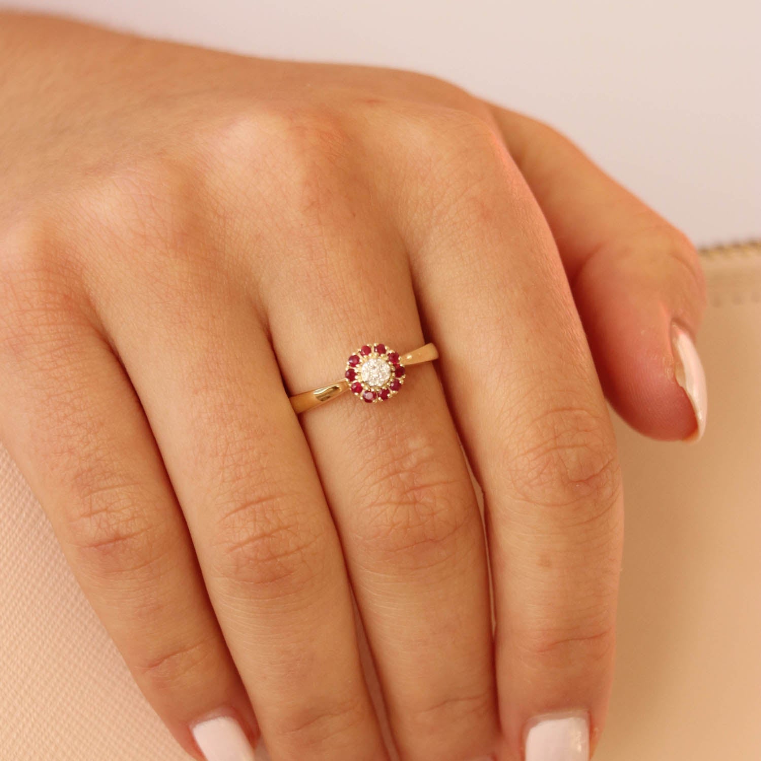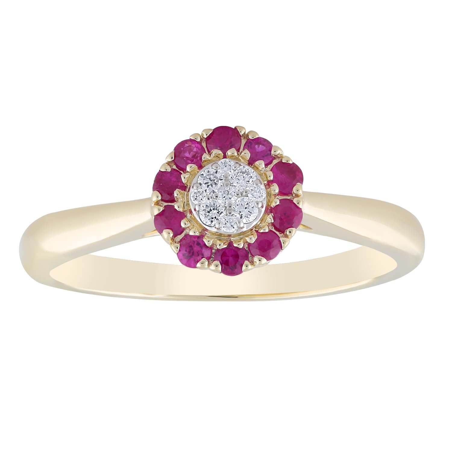 Ruby Ring with 0.05ct Diamond 9K Yellow Gold