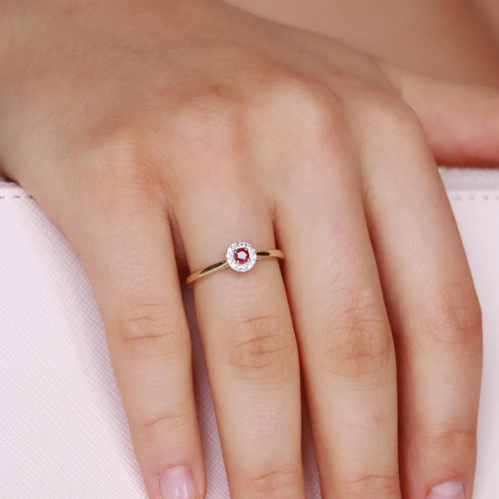Ruby Ring with 0.05ct Diamonds in 9K Yellow Gold