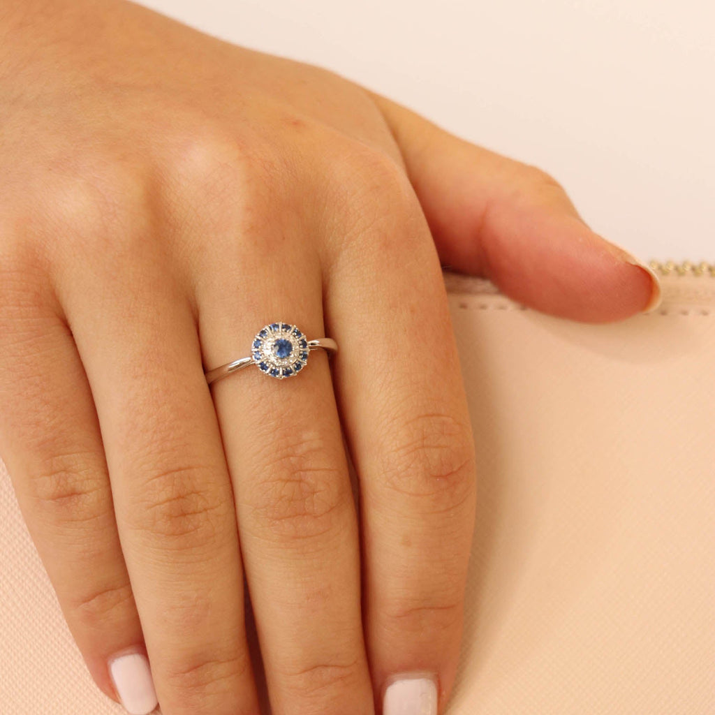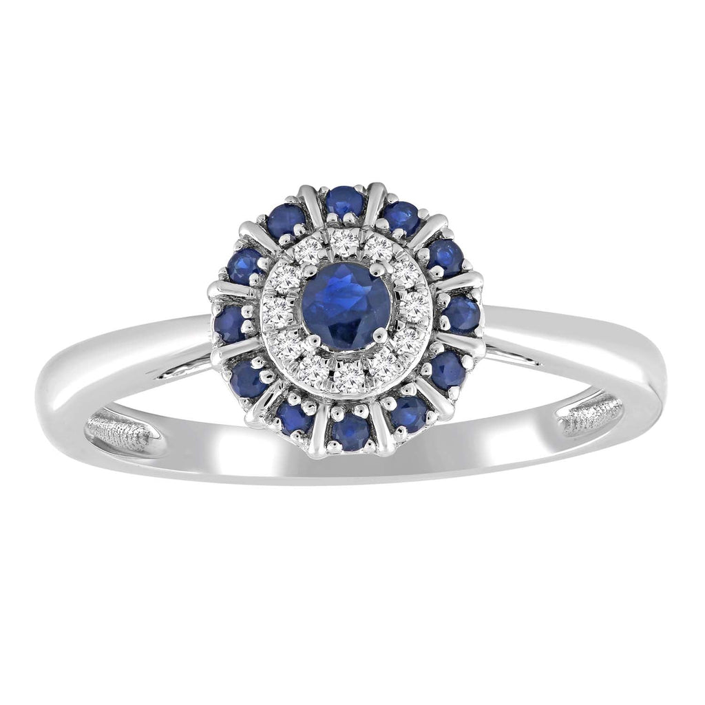Sapphire Ring with 0.04ct Diamonds In 9K White Gold