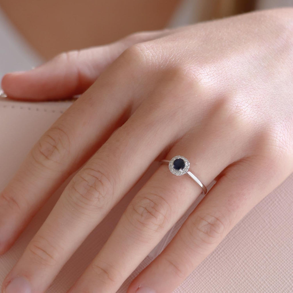 Sapphire Ring with 0.08ct Diamonds in 9K White Gold