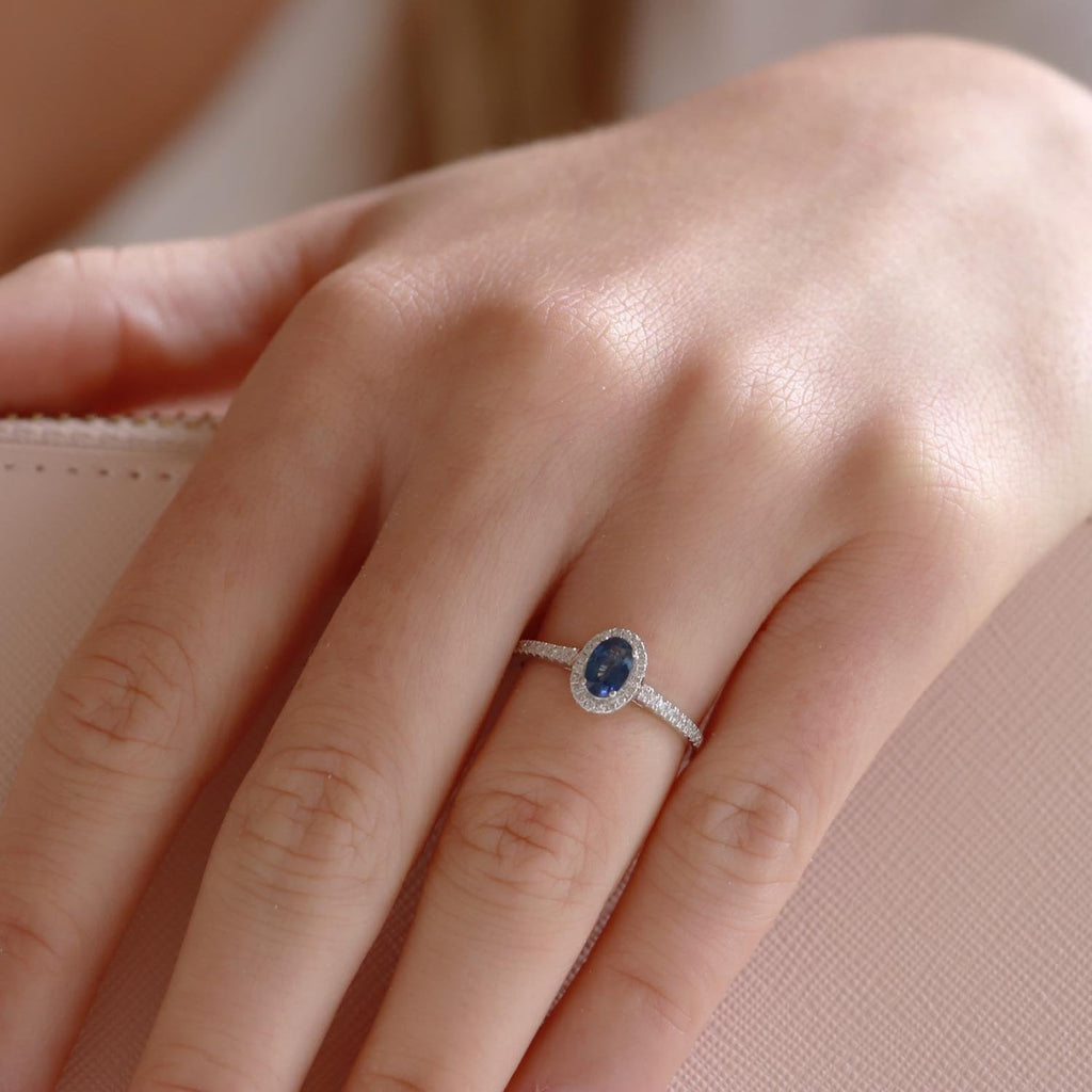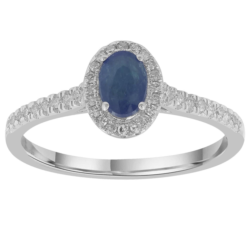 Sapphire Ring with 0.15ct Diamonds in 9K White Gold