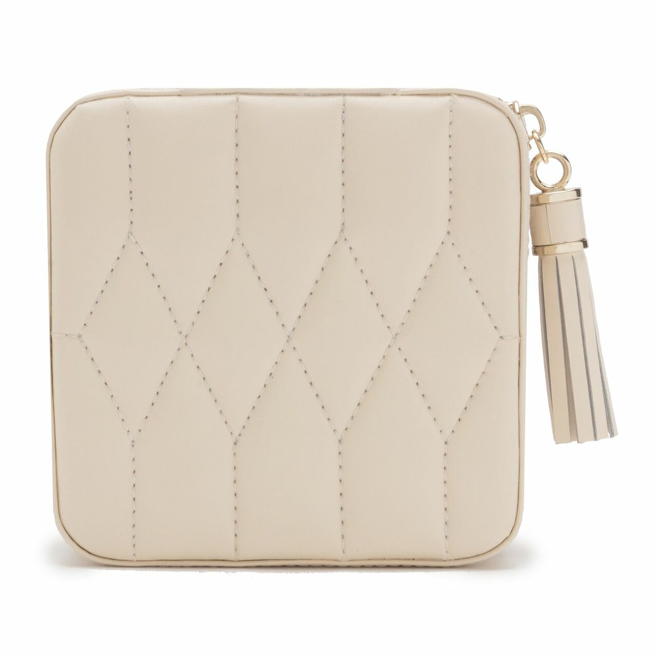 The embodiment of sophistication and style. Caroline, a timeless classic with elegant soft lines of the 50’s, supple diamond quilted leather accented with gold hardware. This refined zip travel case is the perfect home for your precious jewellery and heirlooms. Traveling with Caroline makes safekeeping your jewellery whilst on the go a snap.