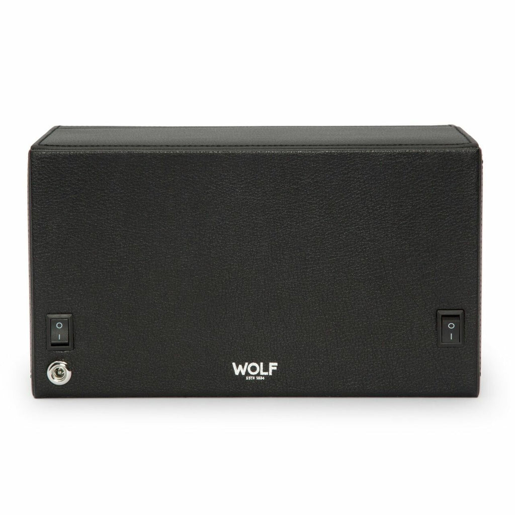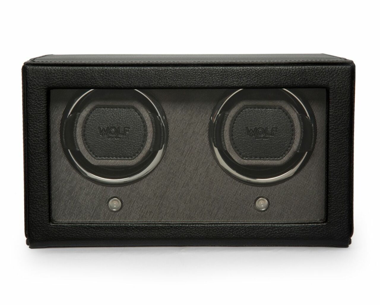 Young, smart and uncomplicated, the cub takes care of your watch with ease. Six sides perfectly proportioned to encase your timepiece safely and precisely. Never miss a beat in your busy life. Features black vegan leather, chrome finished hardware and two winding modules.