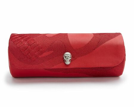 The Memento Mori Watch Roll is hand crafted in smooth vegan leather with skull embroidery, brushed chrome skull hardware and black ultrasuede lining to keep your timepieces protected while traveling. Includes space for 3 watches with 2 Watch Guards and snap closure. The Memento Mori watch roll also includes a secret jewelry capsule (patent pending) inside of the watch roll with three compartments for safe keeping of cufflinks, rings and other smaller valuables.