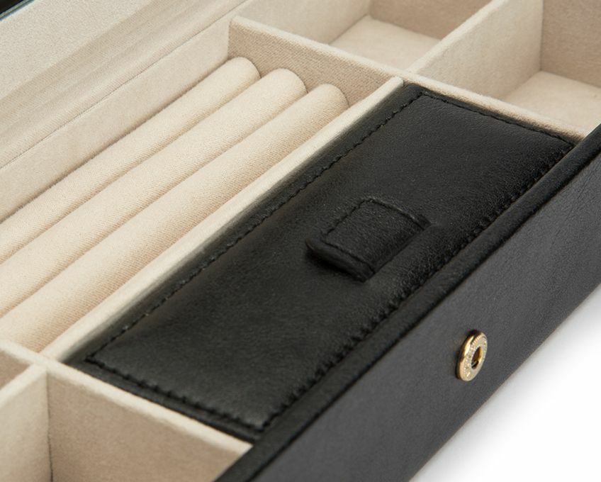 Charming and sophisticated, Palermo takes cues from its namesake city on the side of a mountain by the sea. Wrapped in a sumptuous leather, this luxurious jewelry case provides a safe home for your accessories while traveling. Includes LusterLoc anti-tarnish lining and gold finish.