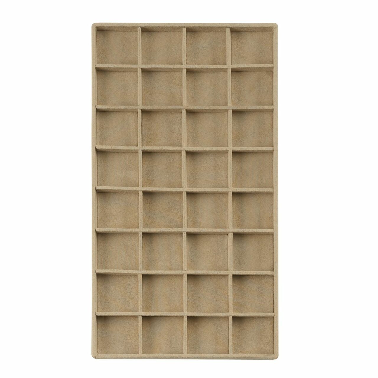 The clean lines and simple design of VAULT lets you decide how to best care for your preciousness. Beautifully organize and display jewelry with the vault tray earring insert. Insert fits neatly into all stackable vault trays and includes 32 earring compartments and anti-tarnish LusterLoc lining. No more tarnishing for up to 35 years!