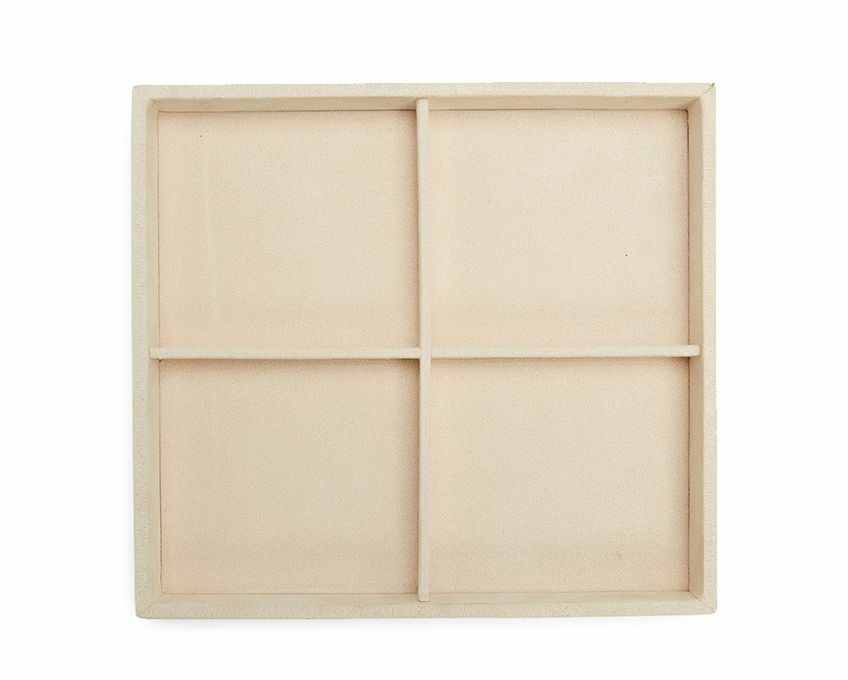 Beautifully organize and display jewelry with the vault tray bracelet half insert. Insert fits neatly into all stackable vault trays and includes 4 bracelet compartments and anti-tarnish LusterLoc lining. No more tarnishing for up to 35 years!