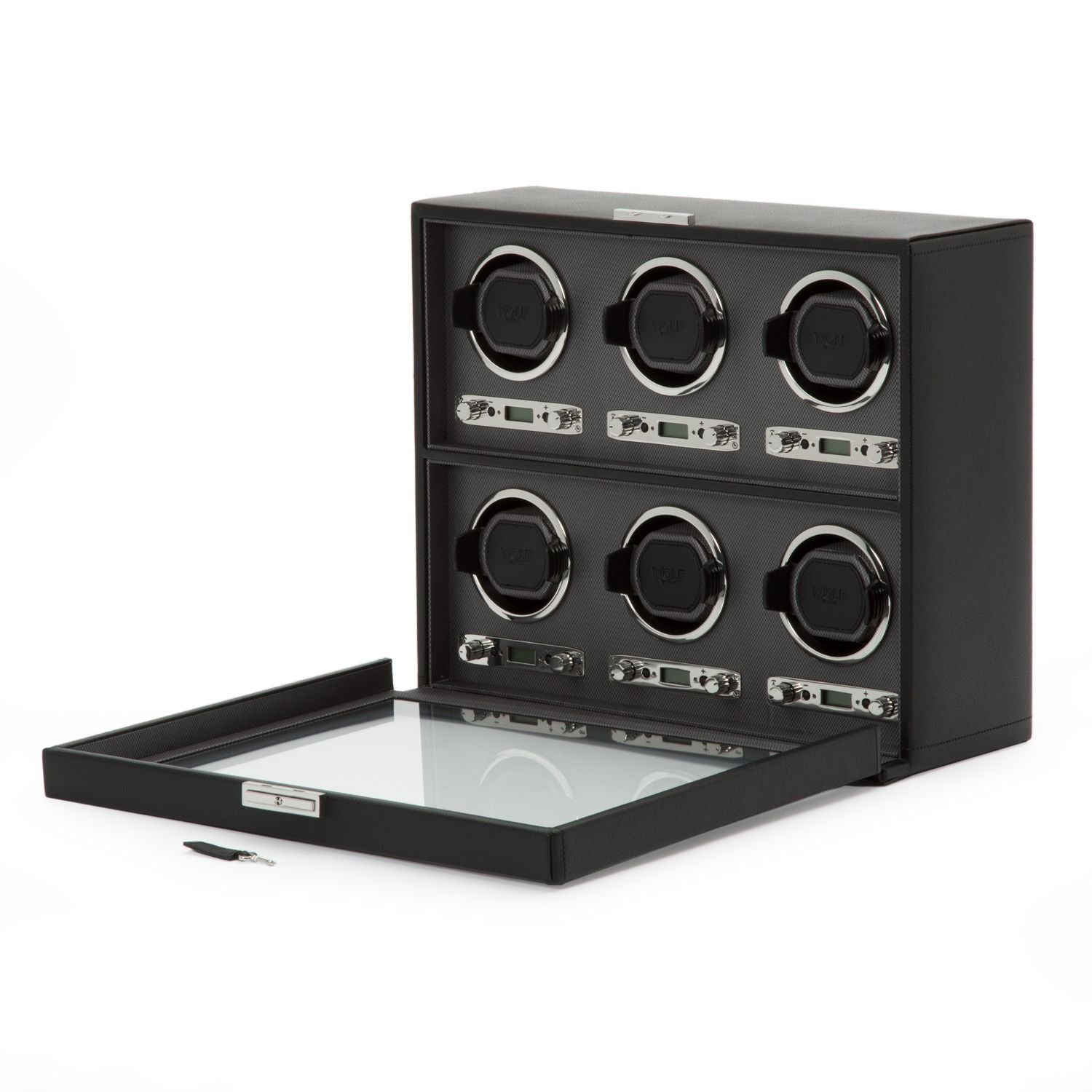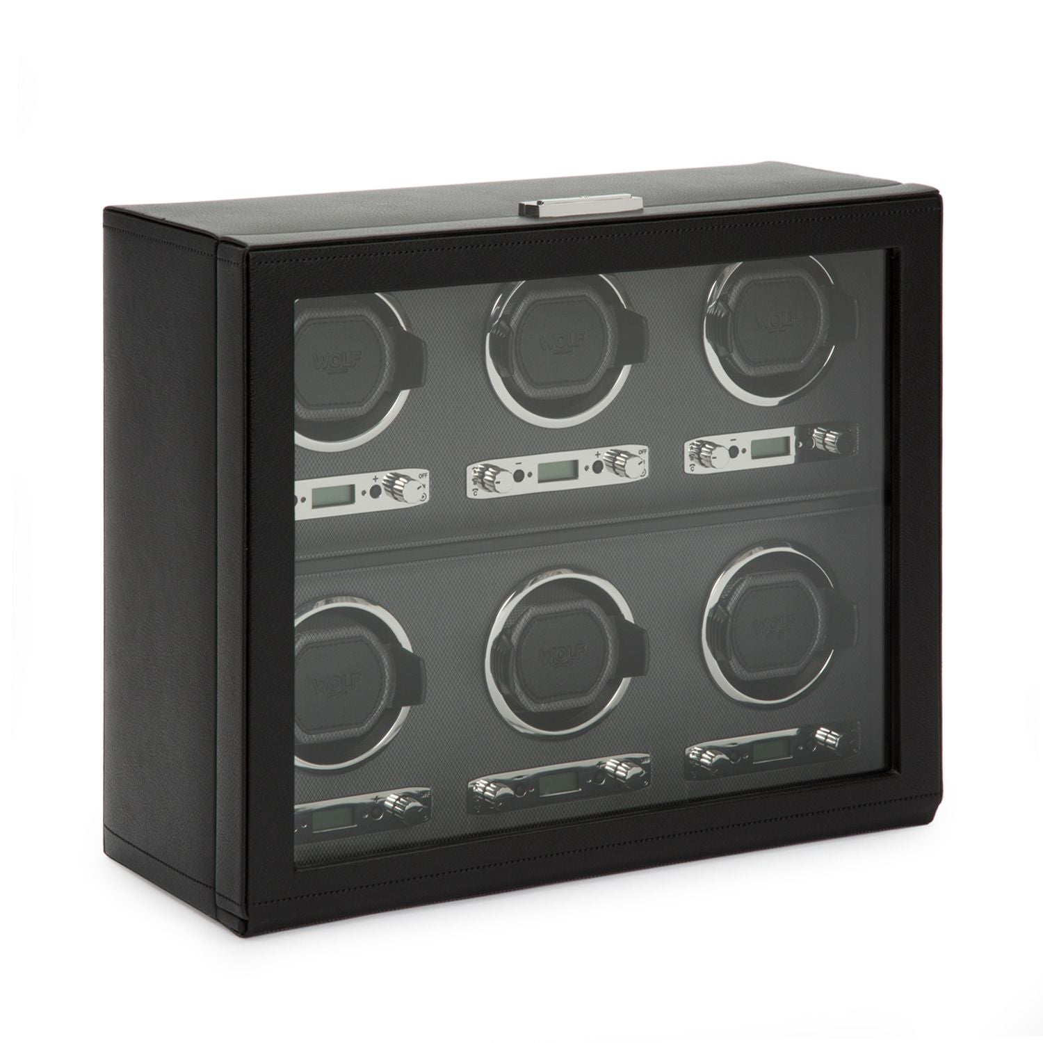 Rule over your collection with authority with a timeless Viceroy 6-piece watch winder with storage. A modern classic that exudes an understated elegance, the Viceroy includes a smooth pebble exterior, silver textured silk lining, locking glass cover, backlit LCD display, chrome finished hardware and 6 winding modules.