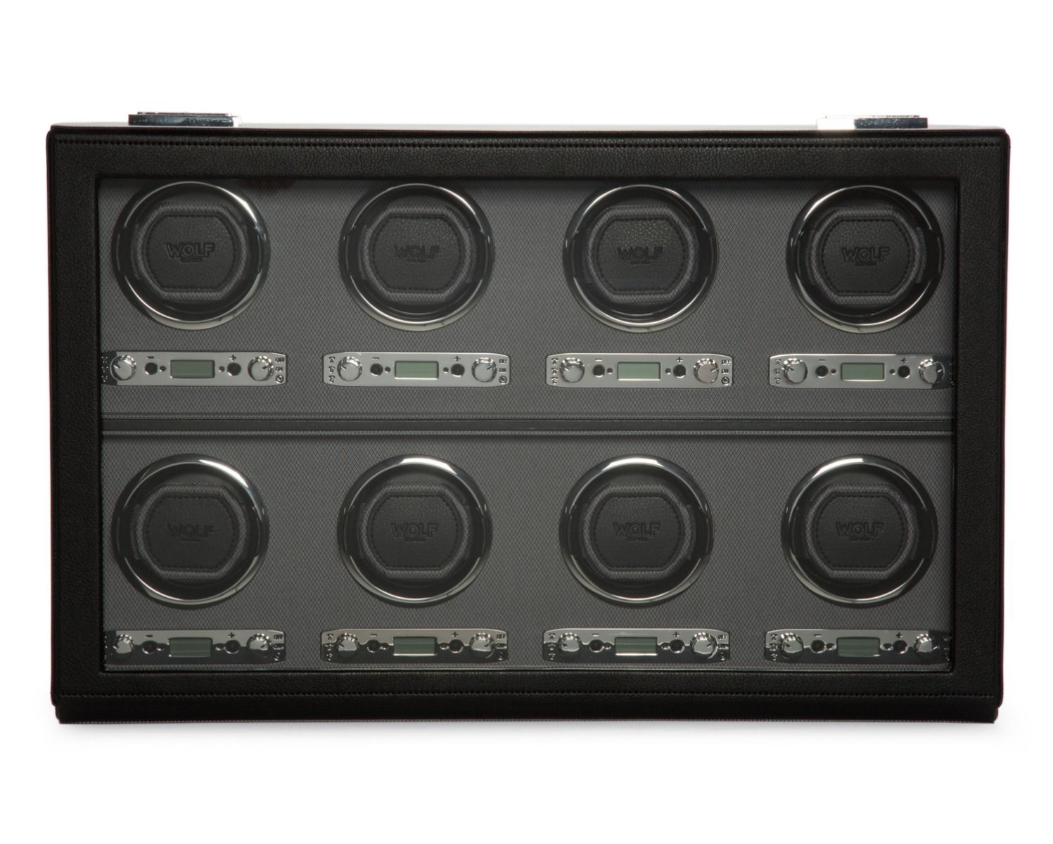 Rule over your collection with authority with a timeless Viceroy 8-piece watch winder with storage. A modern classic that exudes an understated elegance, the Viceroy includes a smooth pebble exterior, silver textured silk lining, locking glass cover, backlit LCD display, chrome finished hardware and 8 winding modules.