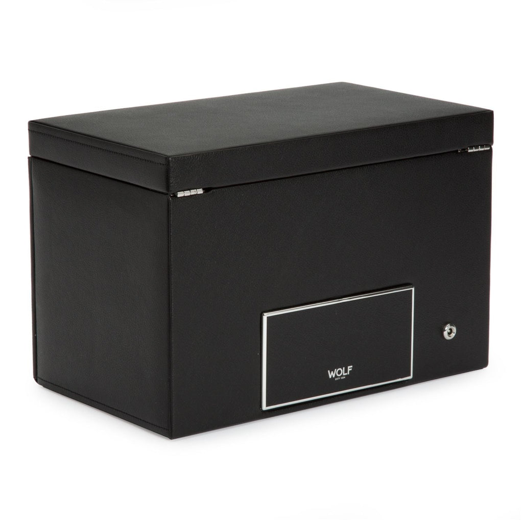Rule over your collection with authority with a timeless Viceroy double watch winder with storage. A modern classic that exudes an understated elegance, the Viceroy includes a smooth pebble exterior, silver textured silk lining, locking glass cover, backlit LCD display, chrome finished hardware and 2 winding modules.